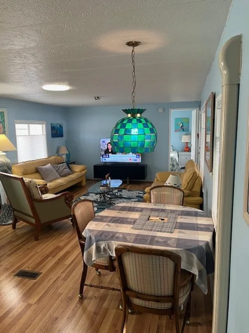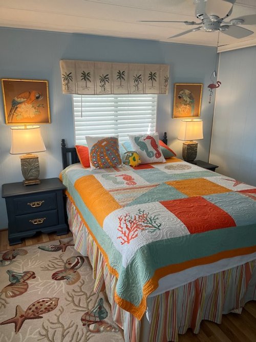 This mobile home is in excellent condition and just remodeled with fresh paint and many new things. Fully stocked kitchen with everything you need to cook, dishwasher, microwave, washer and dryer. Very comfortable leather sofas in living room, brand new window blinds through out for privacy. Separate 10 x 20 enclosed lanai with a/c and TWO new 55" TV with Roku. Bring your passwords for Netflix, Amazon etc… All new linens, towels etc. Just bring your clothes! Very comfortable and quiet home..
